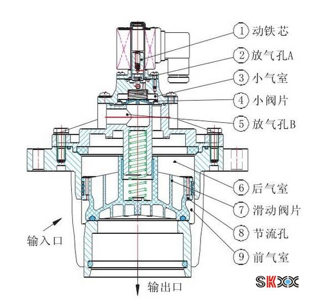 注解:上面说得是电磁阀的普通原理,实际上,根据流过介质的温度,压力等情况,比如管道有压力和自流状态无压力,电磁阀的工作原理是不同的。比如在自流状态下需要零压启动的,就是通电后,线圈整个把闸体吸起来。而有压力状态的电磁阀,则是线圈通电后吸出插在闸体上的一个销子,用流体自身的压力把闸体顶起来。这两种方式的不同之处是,自流状态的电磁阀,因为线圈要吸起整个闸体,所以体积较大而带压状态的电磁阀,只需要吸起销子,所以体积可以做的比较小。